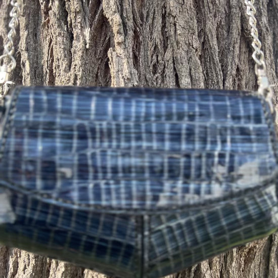 Bolsa em Couro – Azul com Textura Crocodilo (2 em 1 – de Mão ou Cintura)