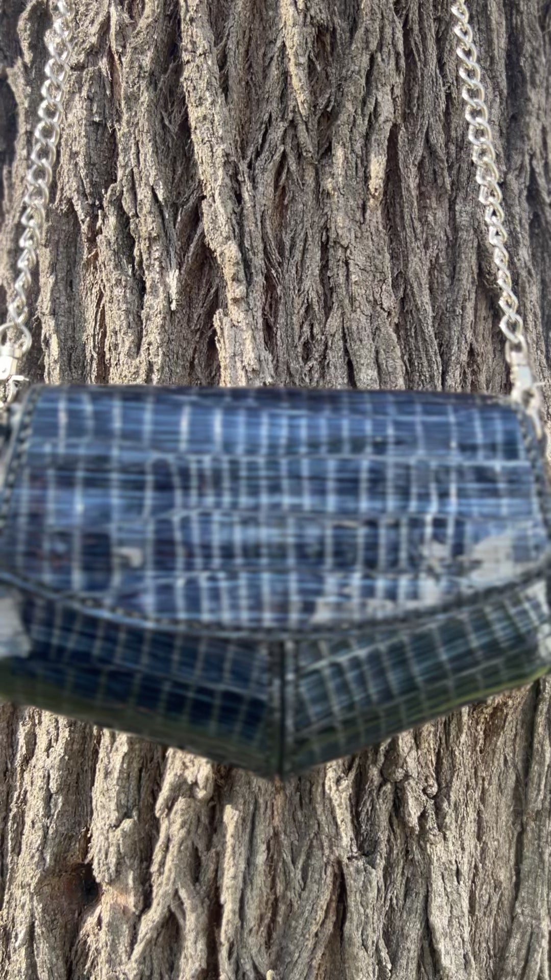 ✔ Couro genuíno azul com textura croco
