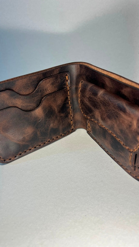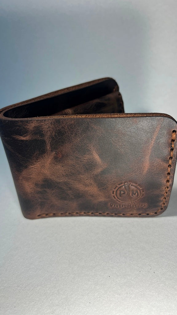 Clássica e intemporal, esta carteira em couro castanho com acabamento vintage combina robustez, funcionalidade e um toque artesanal inconfundível.