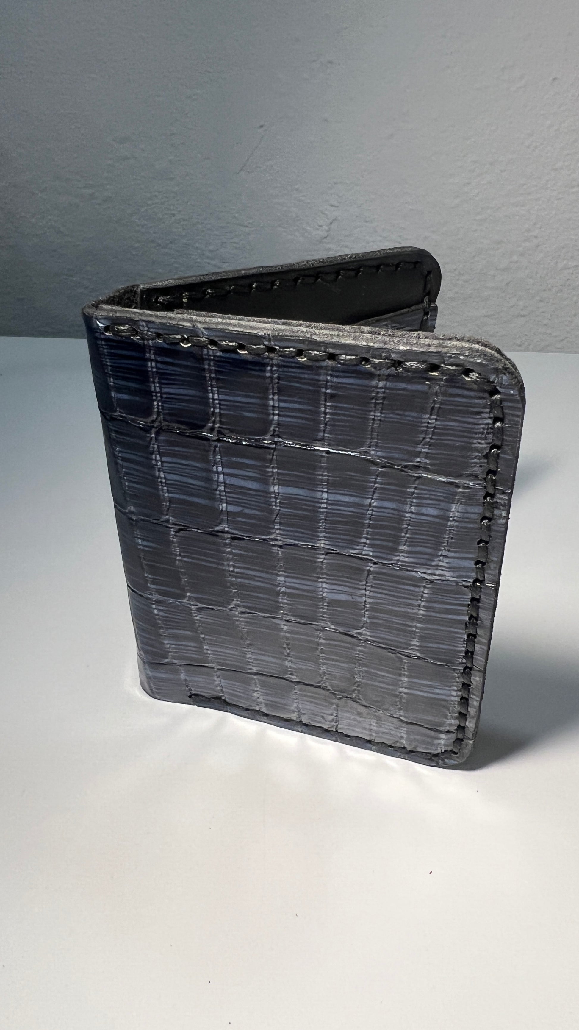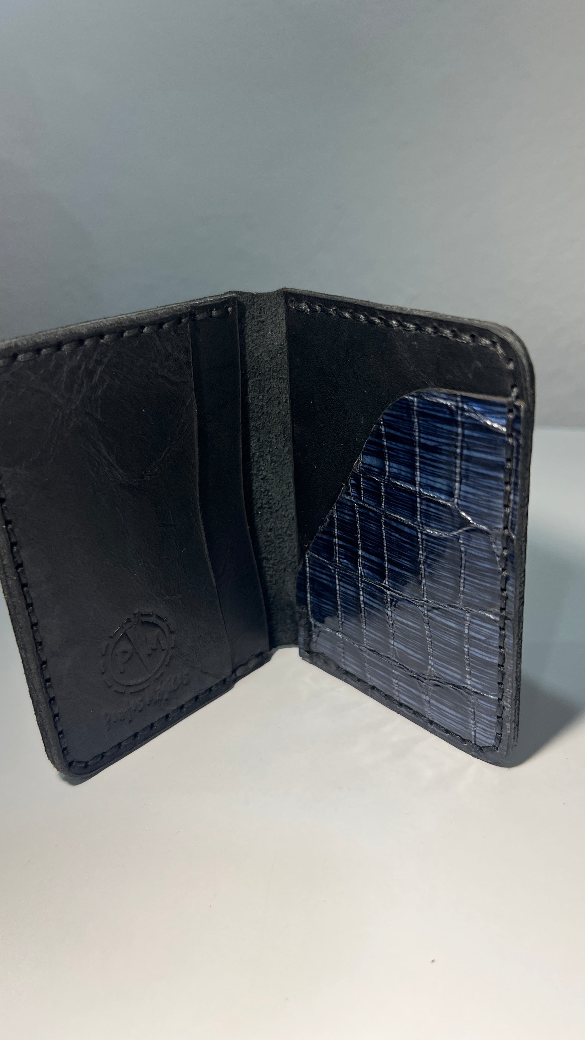 Porta Cartões em Couro – Raiado Azul com Padrão Crocodilo