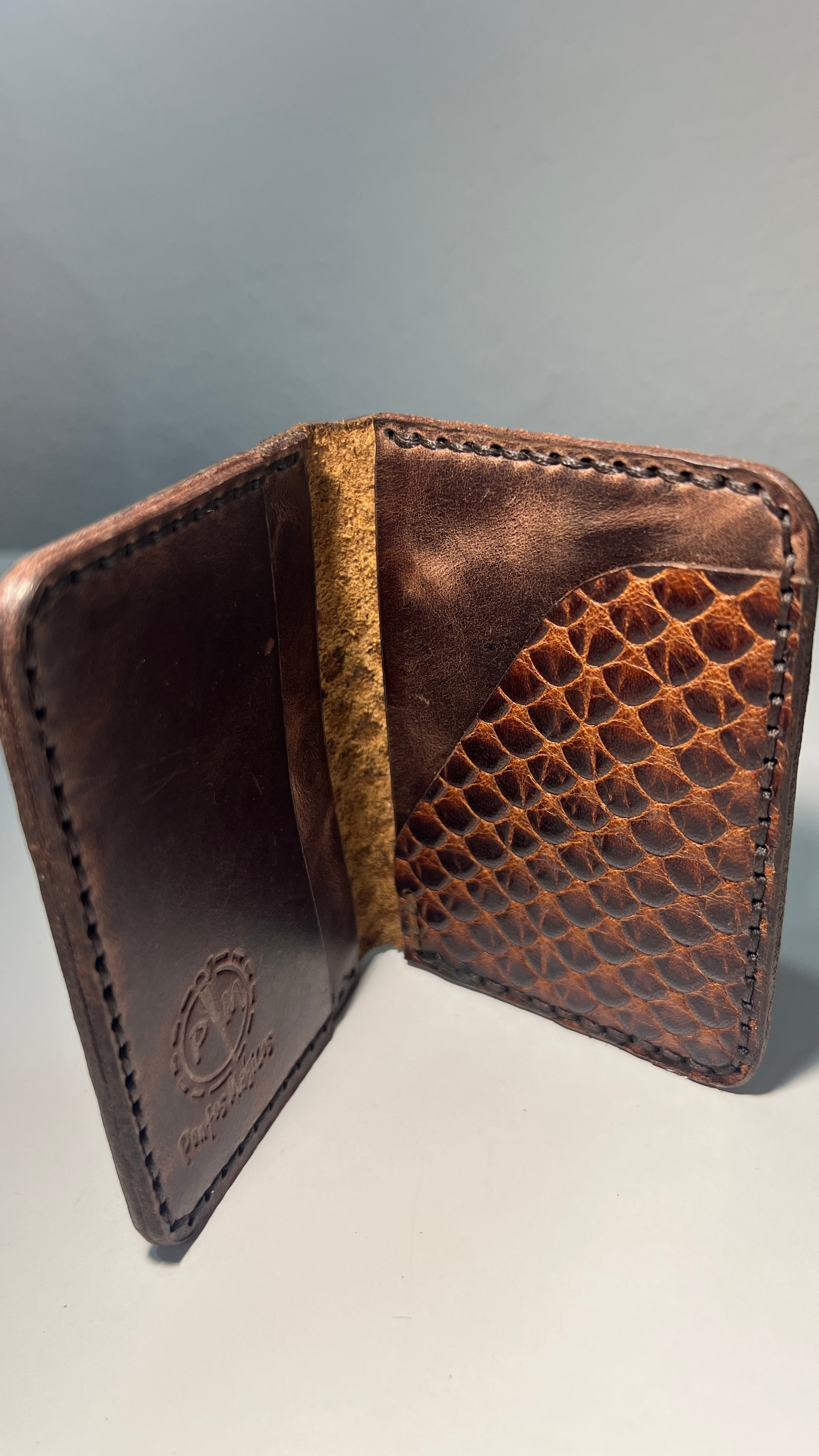 Porta Cartões em Couro - Padrão Castanho com Textura Escamada