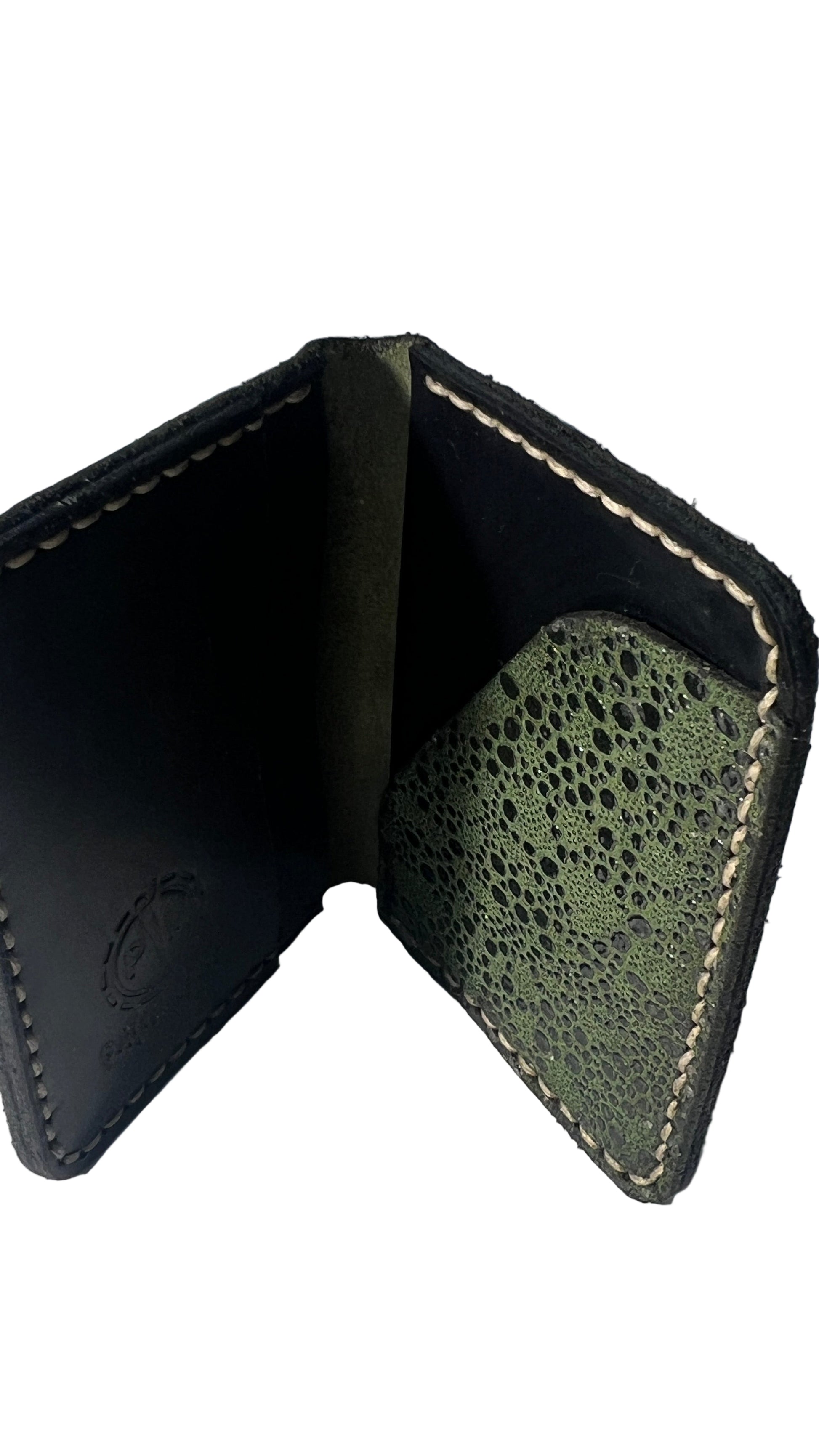 O Porta Cartões em Couro Verde Textura Natural by Thierry destaca-se pela sua textura marcante e acabamento artesanal.